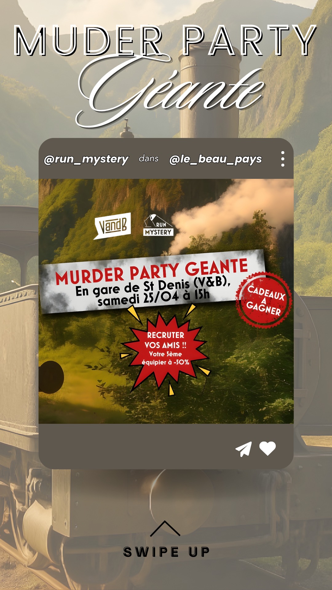 L’équipe de Run Mystery vous donne rendez-vous pour une Murder Party géante, en collaboration avec V and B Saint-Denis, pour une après-midi pleine de suspense.